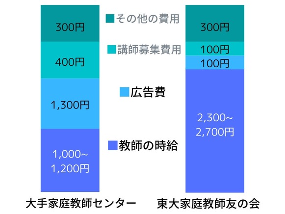 記事冒頭で東大家庭教師友の会の平均時給は約2,700円と紹介しました。
