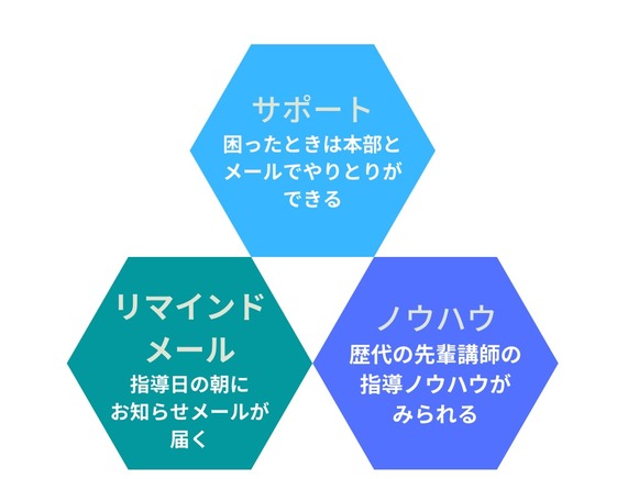個人の責任のもとで行うことが第一ではありますが、当会では多忙であったり不慣れであったりする家庭教師の方が”うっかりミスをしてしまう”ことを防ぐため、指導日の朝に「本日が指導日である」旨のリマインダーメールを送るシステムを採用しています。