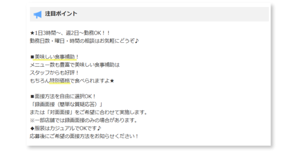 もちろん時給の高さも大切ですが、求人情報をしっかり見ないと、面接段階や実際に働き始めてから「こんなはずじゃなかった」と後悔するケースも少なくありません。書かれていることを理解し、求人情報のどこを「見るべきか」を押さえておけば、ミスマッチは大幅に軽減できます。